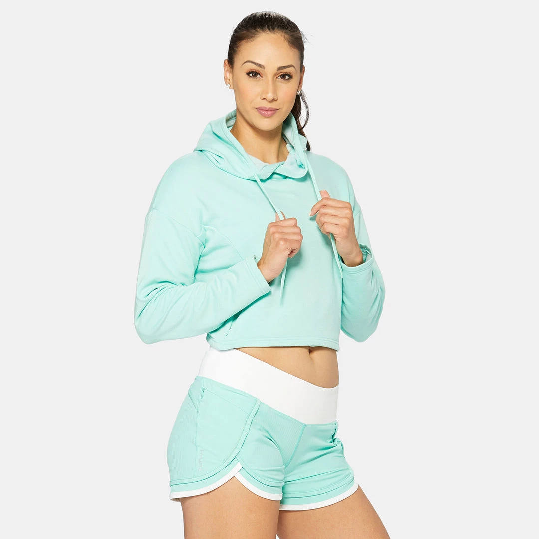 Feel the difference of the Eclipse Cropped Hoodie with its wear-anywhere, light fleece fabric. Eclipsing panels on the back, layer gracefully for a flattering shape.